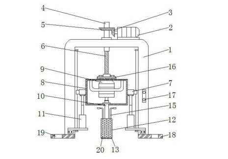 目前在对土壤进行取样时,大多都采用普通的手动取样器进行人工取样,然而,这 样的取样方式取样效率较低,且取样十分费力,每次取样人员在的待修复的土壤进行取样 时都会花费取样人员大量的工作时间,增加了取样人员的工作负担,降低了取样人员的工 作效率,不能实现既快速又方便的进行取样,从而给人们的土壤修复工作带来了极大的不 便。 针对现有技术的不提供了一种用土壤修复设备取样装置,解决了取样 效率较低,且取样十分费力,不能实现既快速又方便进行取样的问题。 这种用土壤修复取样装置,包括U型支撑架,所述U型支撑架的顶部通过连接块固定连接有升降电机,所述升降电机输出轴的外表面套设有第一锥齿轮,U型支撑架的顶部且位于升降电机的一侧通过轴承转动连接有螺纹套筒,螺纹套筒的底部贯穿U型支撑架并延伸至U型支撑架的内部,螺纹套筒位于U型支撑架顶部的外表面套设有与第一锥齿轮相互啮合第二锥齿轮,本实用新型涉及土壤修复设备技术领域。该土壤修复用取样装置,大大提高了取样效率,节省了大量劳动力,无需花费取样人员大量的工作时间,减轻了取样人员的工作负担,实现了既快速又方便的对待修复土壤进行取样,从而大大方便了人们的土壤修复工作。